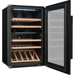 Able to store up to 52 bottles and equipped with two separate cooling zones, this unit would be perfect for anyone who likes to collect various types of wine. Featuring an anti-vibration system and anti-UV glass, this cooling unit will protect your wines natural sediment from being disturbed.Â