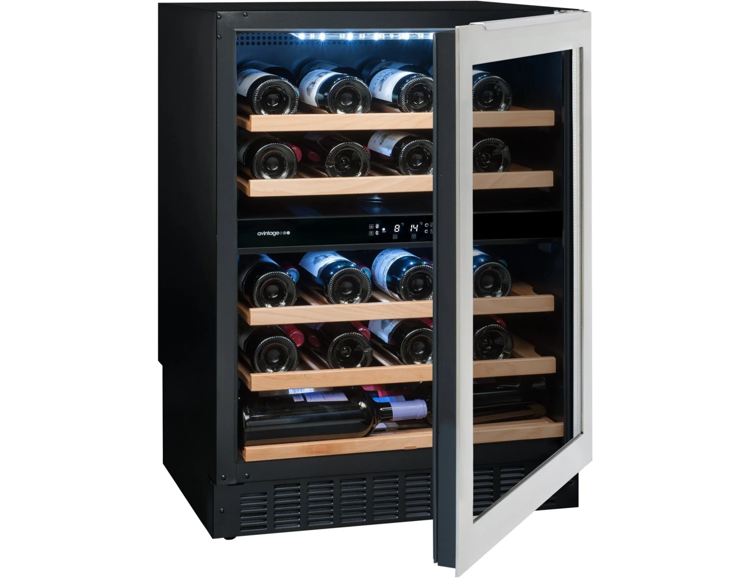 The Avintage AVU54TXDZA is a high-performance wine cooler that has the ability to be installed as either a built-in unit or a freestanding unit. With a dual temperature zone of between 5°C and 10°C in the upper zone and 10°C and 20°C in the lower zone together with enough room to store up to 50 Bordeaux bottles, this cabinet is perfect for storing your favourite bottles of red or white wine.