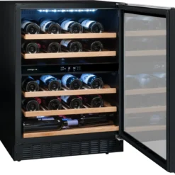 -  Dual temperature zone, with a temperature range of 5°C and 10°C in the upper zone and 10°C and 20°C in the lower zone. Perfect for both storage or serving of your fine wines.