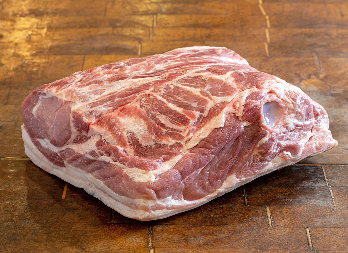 The pork shoulder is less lean than the leg and is the best joint to use if you fancy making your own pulled pork. Cut from the shoulder, this joint comes bone-in to provide added flavour. Â The rib bone has been removed to make shredding or cutting easier.
