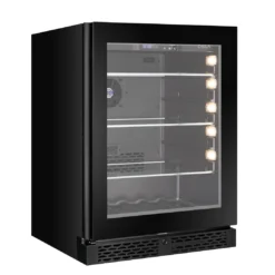 The BV46S-BLACK from CELLA is part of the beverage storage range and is designed specifically for the storage of cold beverages whether that be beer, cider, tonic or even bottled water. The beverage coolers come with multiple glass shelves which will slide on the slats, however, we suggest leaving the shelves in position when taking a drink out.Â