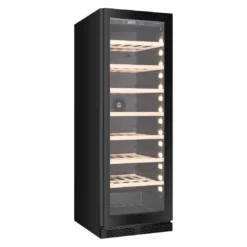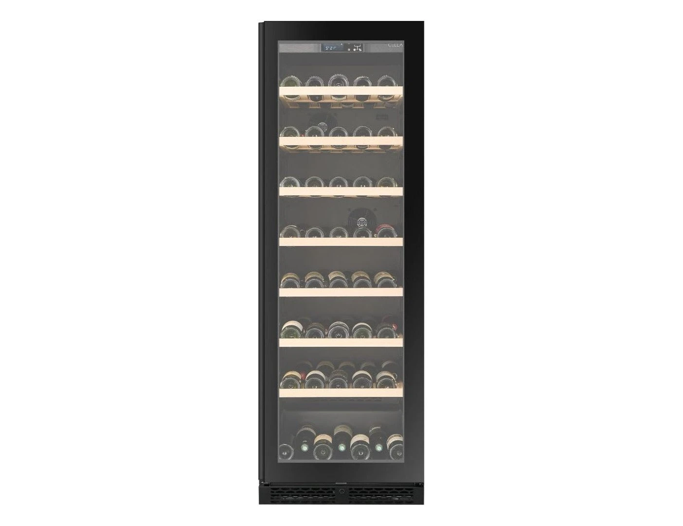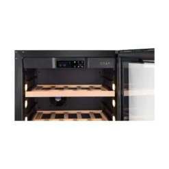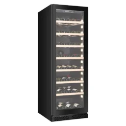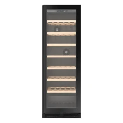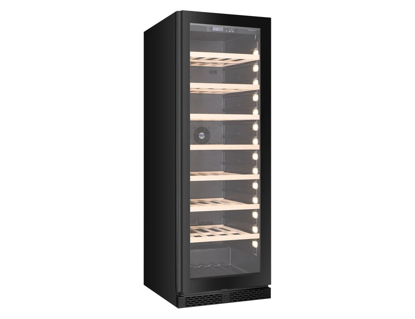 The W163S-BLACK from CELLA is part of the wine storage range meaning it is solely designed for short or long term storage of wine, there are a few features that make the CELLA range of products very usable products in todays wine cooler world. The shelves are all telescopic extending 80% of the way out and this model is also front ventilating, which means, should you want to install the wine fridge undercounter or built into cabinet – you can do with no issues as the hinges open within the recommended 600mm width.