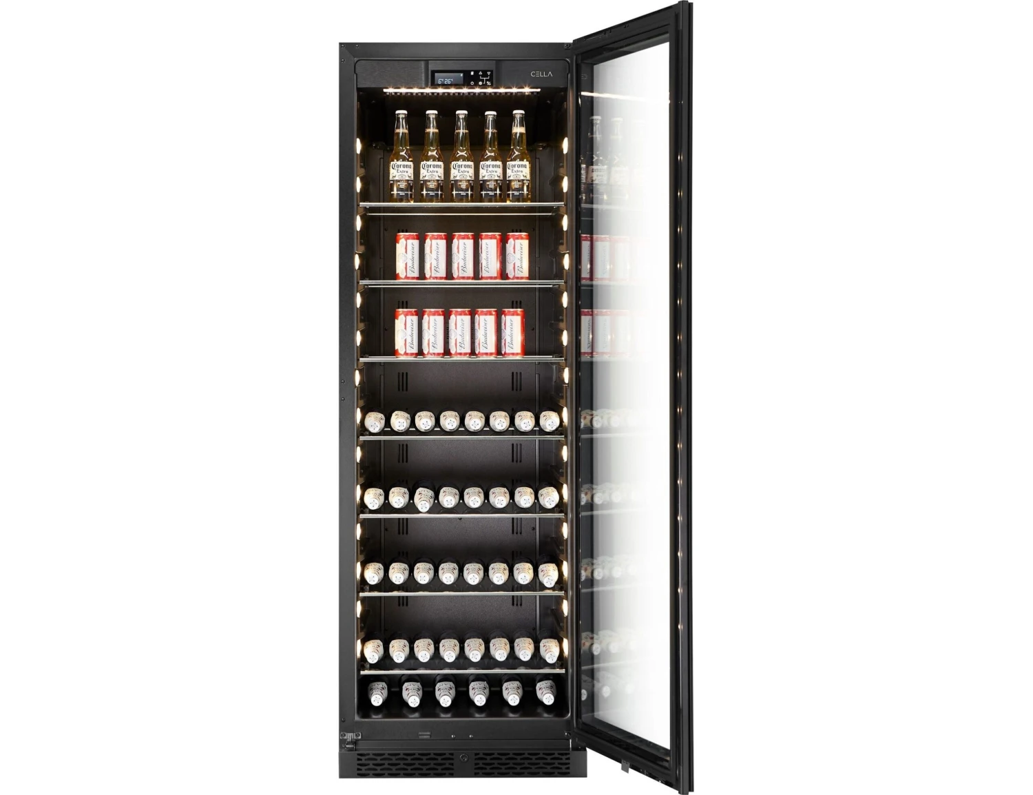 The BV122S-BLACK from CELLA is part of the beverage storage range and is designed specifically for the storage of cold beverages whether that be beer, cider, tonic or even bottled water. The beverage coolers come with multiple glass shelves which will slide on the slats, however, we suggest leaving the shelves in position when taking a drink out.