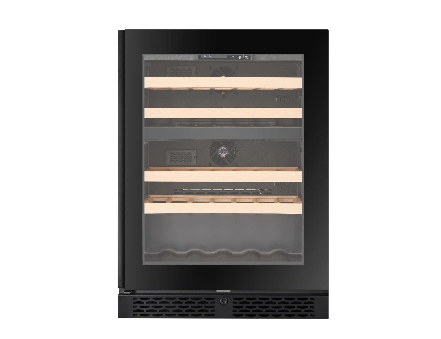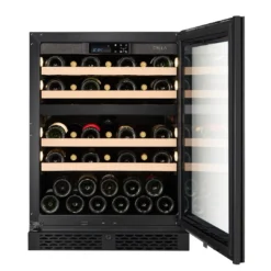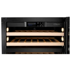 The W39D-BLACK from CELLA is part of the wine storage range meaning it is solely designed for short or long term storage of wine, there are a few features that make the CELLA range of products very usable products in todays wine cooler world. The shelves are all telescopic extending 80% of the way out and this model is also front ventilating, which means, should you want to install the wine fridge undercounter or built into cabinet – you can do with no issues as the hinges open within the recommended 600mm width.