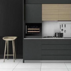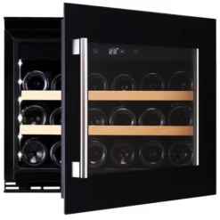 The Dunavox DAVS-18.46B is a luxury, 18 bottle capacity, integrated wine cooler. This single temperature zone model operates at temperatures between 5°C- 20°C . This integrated wine cooler is designed to be installed in column with an aperture of 455mm.