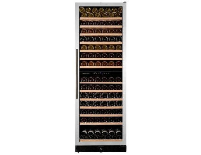 – 166 Bottle Capacity – 86 Upper, 80 lower (750ml standard Bordeaux bottles) – Larger bottles will reduce the capacity and you may need to take a shelf out