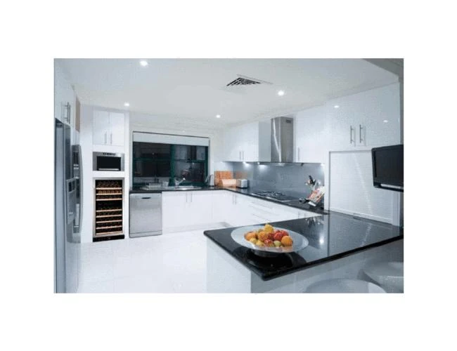 This Dunavox is suitable for use as both a freestanding and built in wine cabinet. The unit features front ventilation and can therefore be placed into cabinetry. When fitted into cabinetry it’s advisable to maintain a gap of 1cm / 10mm at the rear of the unit.