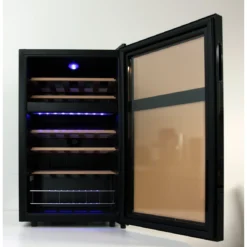 Designed to be easily installed as a freestanding unit, this cooler would be perfect for anyone looking to store up to 30 bottles of their fine wine. Equipped with UV protective glass and vibration-free compressor. This wine fridge eliminates the danger of environmental fluctuations to ensure nothing can damage your wine’s delicate notes.