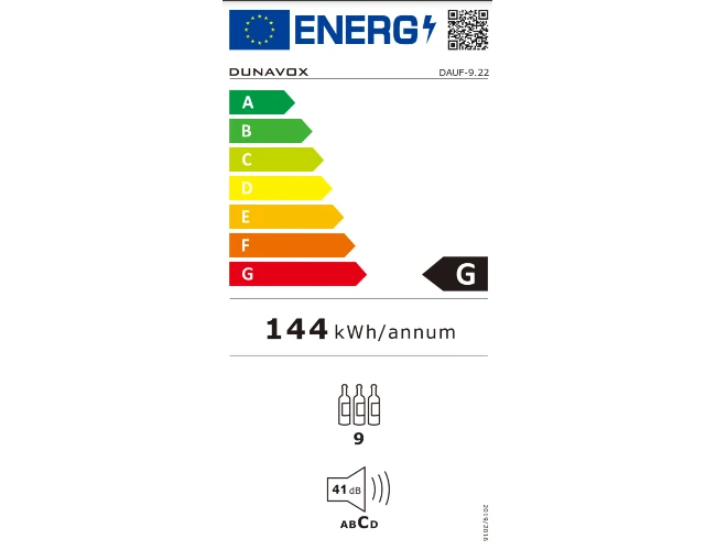 The DAUF-9.22B has a very good energy efficiency rating of G consuming 144kWh / annum. The wine cabinet is also quiet with a noise level output of 41dB, which is very unintrusive. The Dunavox wine coolers use fan assisted cooling which ensures very consistent temperature levels throughout the unit.