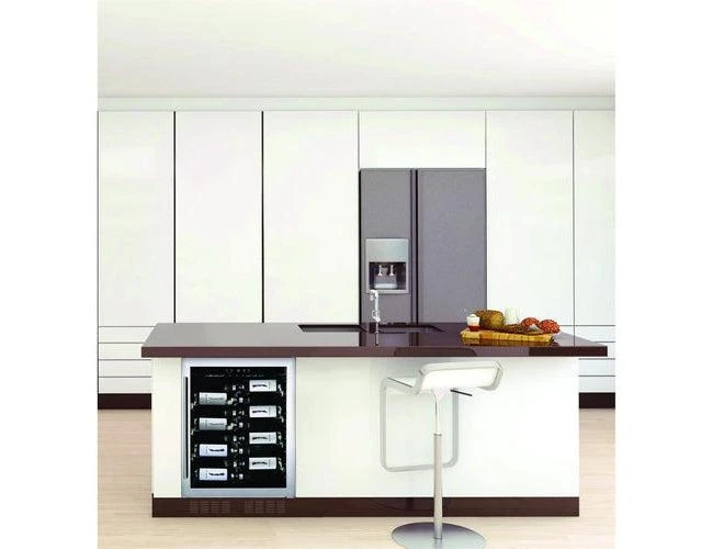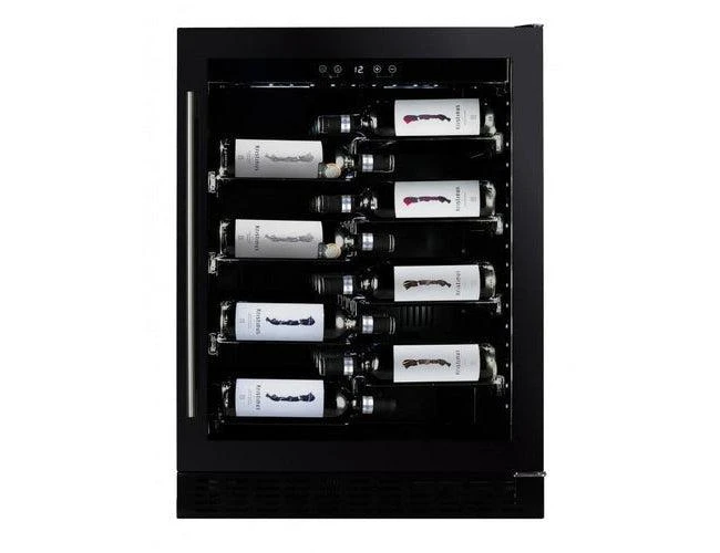 The DAUF-40.138B wine cooler is suitable for use as a built in wine or under counter wine cooler. The unit features front ventilation and can be installed into cabinetry as air is pulled in from the front vent to cool the compressor and ensure the unit does not overheat. The unit is designed to be installed within a cavity of 60cm / 600mm width. The appliance is lit with a beautiful white LED light and is fitted with stunning black door providing a seamless look.