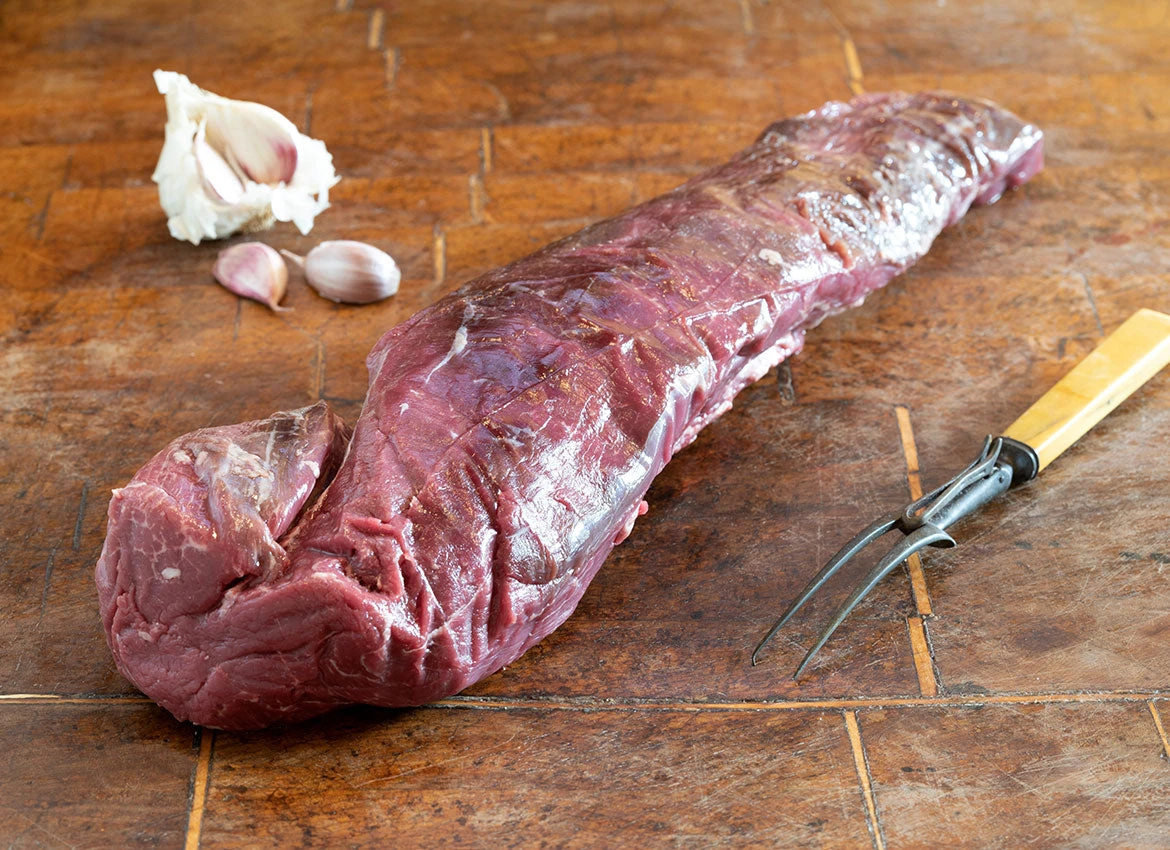 Our whole beef fillet is the most prized joint on the carcass due to its tender and melt-in-the-mouth texture. This is because this muscle along the back does very little work, making it a very lean cut which is suited to quick cooking. It is also the joint to use to make a beef wellington, if you are feeling adventurous.