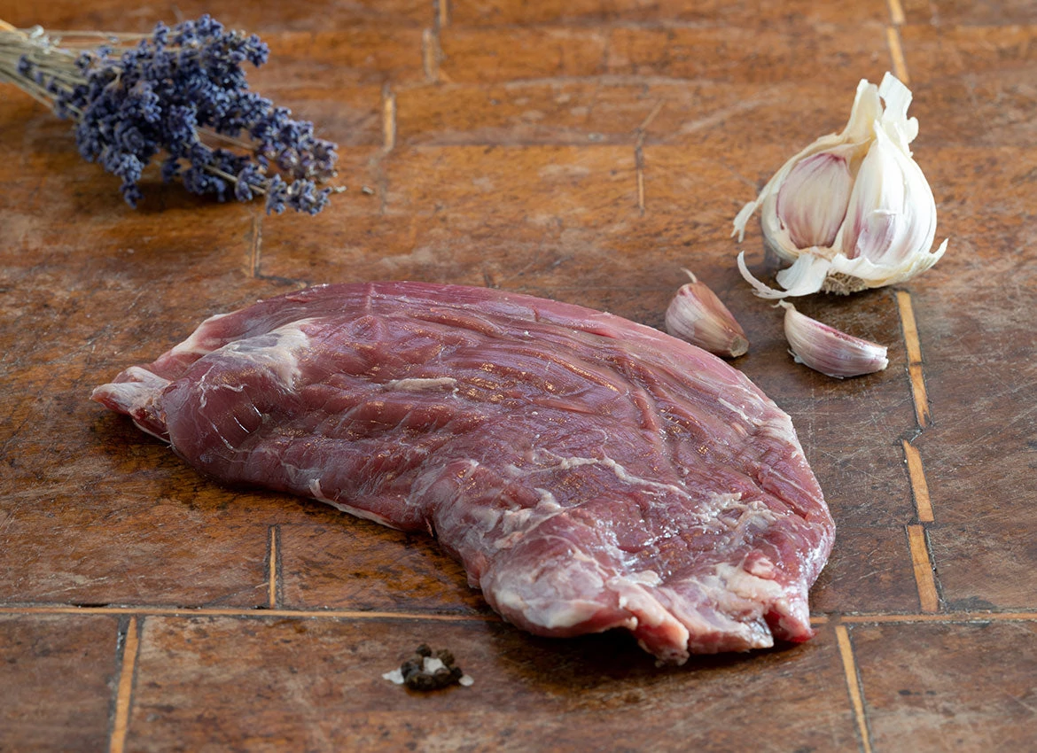Flat, long and packed with flavour, our skirt steak is cut from the flank and so is a little tougher than most other steaks. As a result it is at its tenderest when finely sliced and cooked rare or medium-rare.