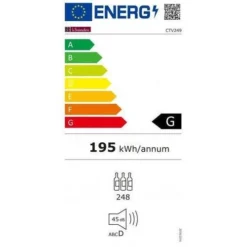 The CTV249 has an energy efficiency rating of G consuming 195kWh / annum. The wine cabinet is also has a noise level output of 45dB.