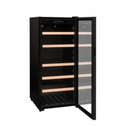 This wine cooler is a freestanding wine cooler requiring ventilation of 5-10cm around the sides and rear of the unit to ensure optimal performance of the compressor. In addition to this, there are 2 adjustable feet positioned on the front of the cooler to compensate for any uneven flooring. This wine cabinet also features a charcoal filter to purify the air, anti-vibration system and humidity is regulated between 50 – 80%. In addition, this model can be situated in an unheated room (ambient temperature must not fall below 5°C) as the winter system can adapt to lower temperature environments.