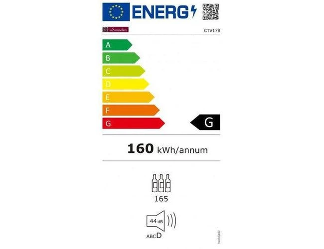 The CTV178 has an energy efficiency rating of G consuming 160kWh / annum. The wine cabinet has a noise level output of 44dB.