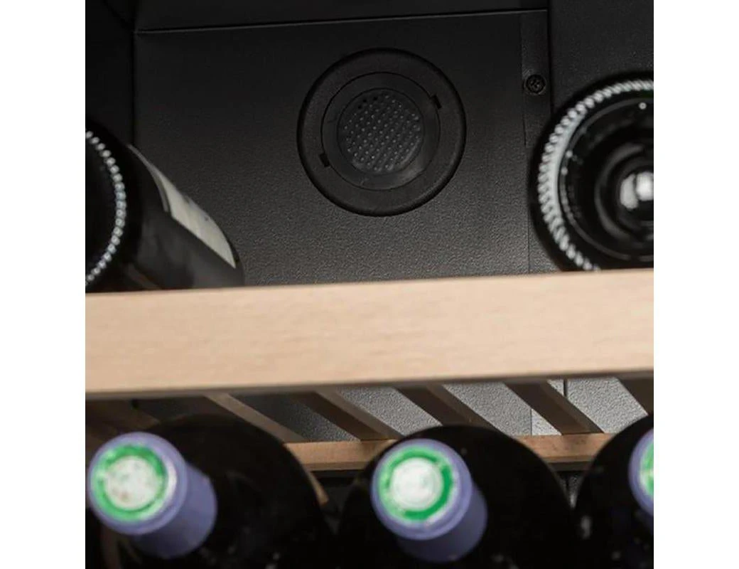 - Multizone wine cooler with a black door with anti UV glass.