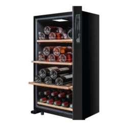 The La Sommeliere LS52BLACK is a beautifully designed, freestanding unit that’s ideal for the short or long term storage of fine wine. With a storage capacity of 52 bottles, this single zone cooling unit is designed with the most dedicated and exacting wine collectors in mind. This wine fridge perfectly protects each bottle over time at a stable temperature of your choice between 5°C and 20°C.