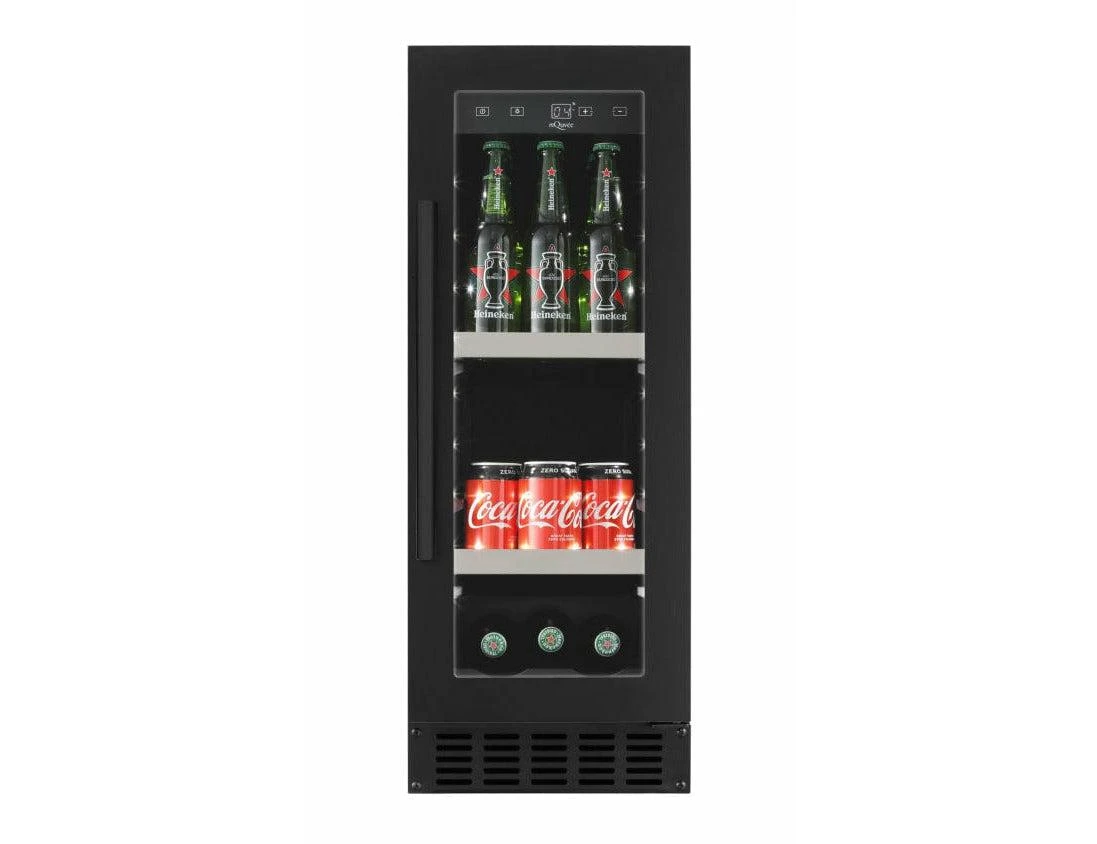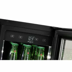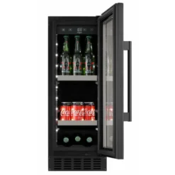Fan assisted cooling means the temperature within the beer fridge is linear from top to bottom with no dead spots and the white LED lighting down the side walls of the drinks fridge lights up your cans and bottles in style.