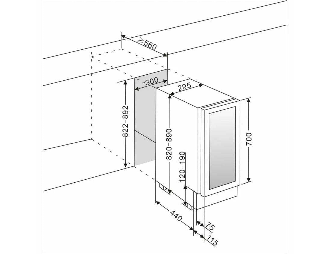 This wine cooler is designed for use as a freestanding or under counter drinks fridge for home use, this means it is front venting and you can build your kitchen cabinets around the units or underneath a bar area in your house.