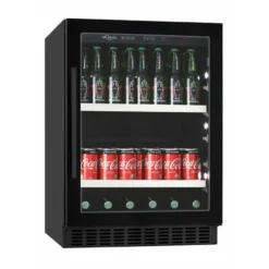 Fan assisted cooling means the temperature within the beer fridge is linear from top to bottom with no dead spots and the white LED lighting down the side walls of the drinks fridge lights up your cans and bottles in style.