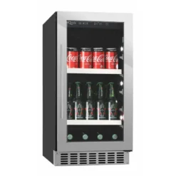 Fan assisted cooling means the temperature within the drinks fridge is linear from top to bottom with no dead spots and the white LED lighting down the side walls of the drinks fridge lights up your cans and bottles in style.