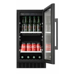 Fan assisted cooling means the temperature within the drinks cooler is linear from top to bottom with no dead spots and the white LED lighting down the side walls of the drinks fridge lights up your cans and bottles in style.