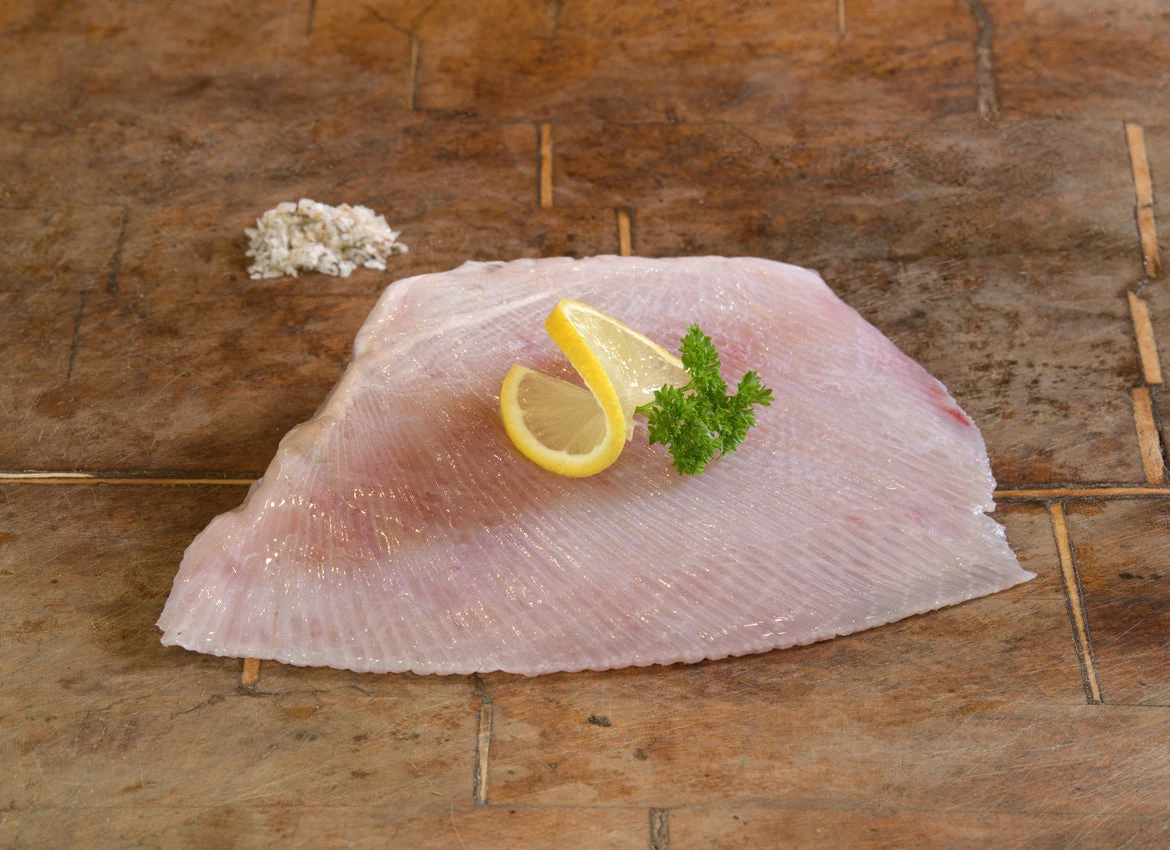 Our ’skate wings’ (technically ray) are sourced from seasonally and regionally sustainable stocks that support our inshore day boat fisheries. They are a cartilaginous fish (no bones) and are easy and quick to poach, grill, bake or fry. Skate wings take herbs and spices really well and are delicious poached in a court-bouillon or with a paprika rub. The meat when flaked off the wing (or pulled) makes the most delicious fish cakes or for a terrine.Â