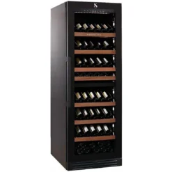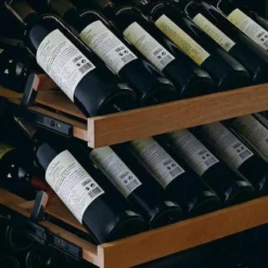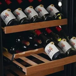 This Swisscave wine cooler, is equipped with a mix of Burgundy and Bordeaux shelves. The WLB460DFLD houses 13 shelves (including 6 display shelf) and a large capacity allowing for storage of up to 134 bottles when all display shelves are in use for mixed bottles, or 168 Bordeaux bottles when all shelves are laid flat and finally a huge 200 Bordeaux bottles with some shelves removed. Larger bottles such as magnums and Burgundy bottles will also fit comfortably in the cabinet however storage of these bottle types will reduce overall capacity. Display shelves hold 5-6 bottles at an inclined angle with additional space for 9-14 bottles behind those bottles on display.