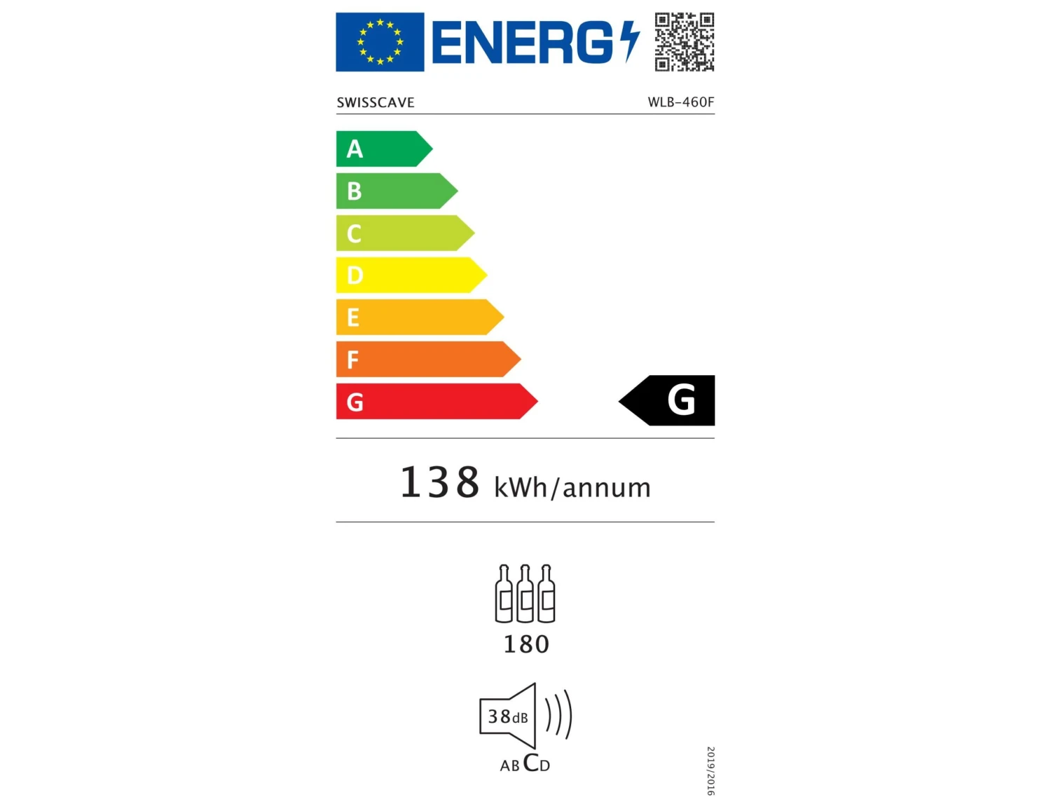 The WLB460FL-MIX has a very good energy efficiency rating of G consuming 138kWh / annum. The wine cabinet is also quiet with a noise level output of 38dB.