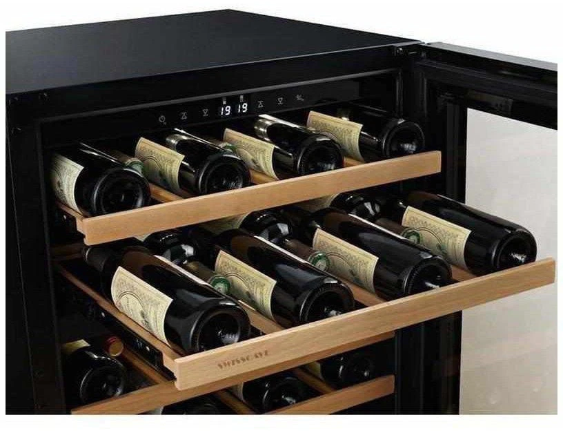 The Swisscave WLB160DF is an outstanding, medium-capacity cooling unit, suitable for use as built in or freestanding, that offers idyllic storage conditions for up to 50 Bordeaux style bottles (40 bottles with all shelves installed). From the brand’s Black Edition Series, this cooler combines utility with modern simplicity to create the perfect environment to store and show off your most treasured labels.