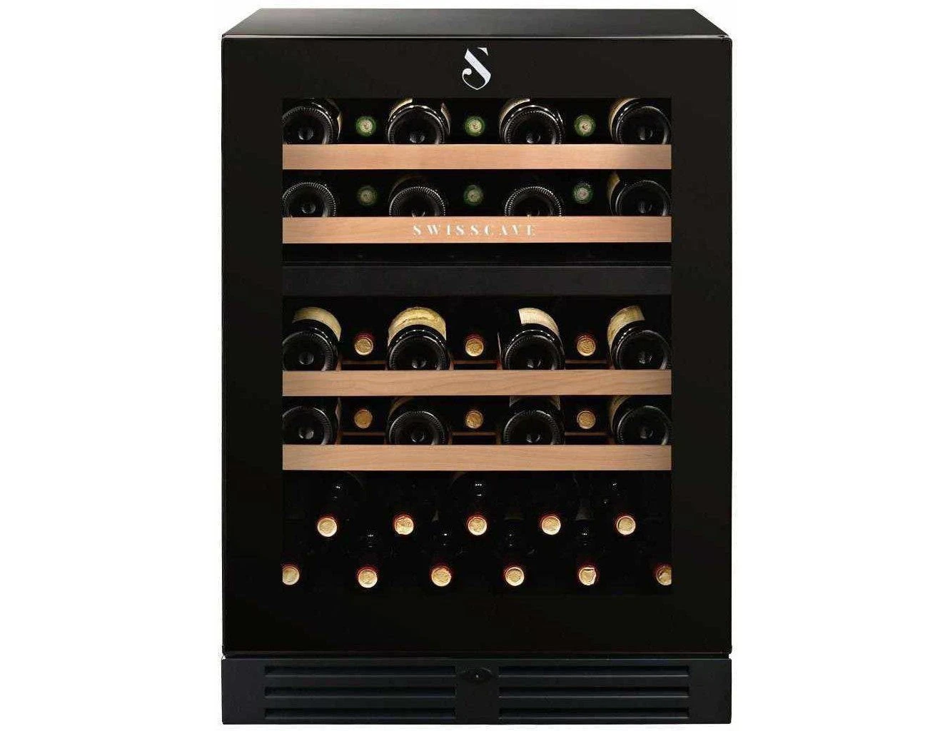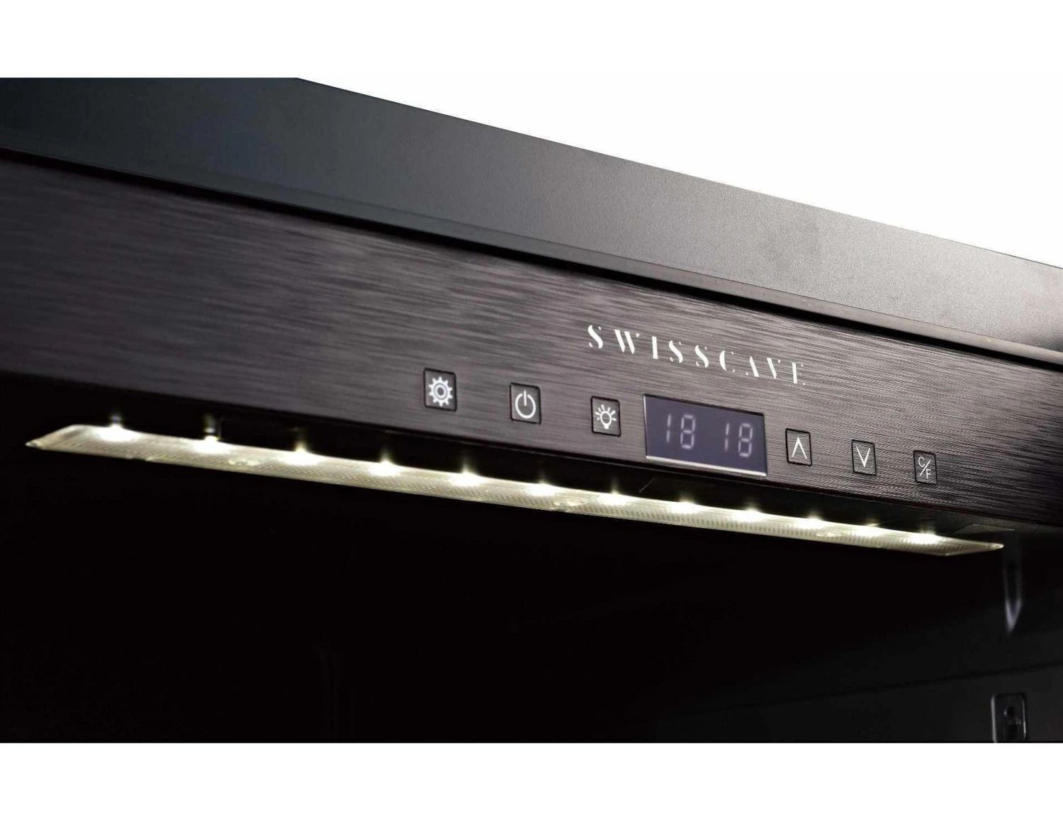 This premium edition Swisscave wine cooler is suitable for use as both a freestanding and built in wine cabinet such as under counter. The unit features front ventilation and can therefore be placed into cabinetry. When fitted into cabinetry it’s advisable to maintain a gap of 1cm / 10mm at the rear of the unit. In addition, there is also a small overhang on all Swisscave wine coolers of approximately 1.5cm / 15mm which should be considered if the wine cooler is installed flush with adjacent cabinetry.Â