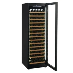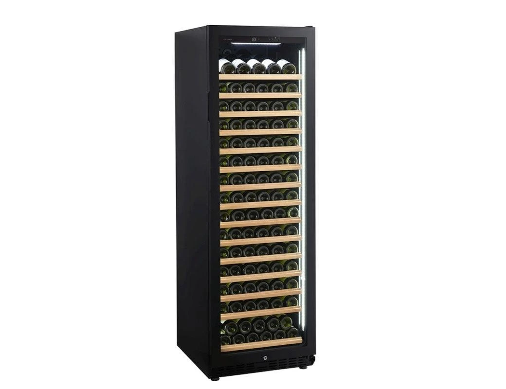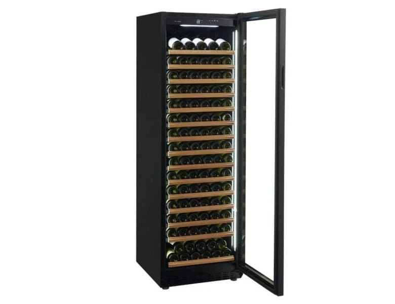 With a maximum capacity of 168 Bordeaux bottles. Each layer of bottles is supported on individual shelves, rather than stacked, for easy access to the wines. The unit also has a display shelf at the top that can be rearranged or additional shelves added at a later date. The temperature within the unit can be adjusted between 5-22°C, and it has a heating system to allow it to function in ambient temperatures as low as 0°C.